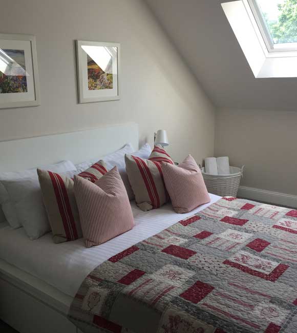 The room boosts compact storage for your clothes in the form of a gentleman’s wardrobe, mosaic bedside tables and original work by local artist Maryann Ryves (who, by chance, resides in Weem!)
